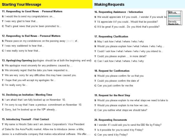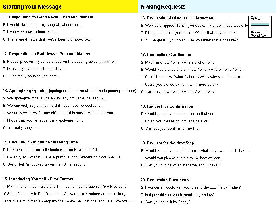 Making Requests: How inconvenient is your request? Difficult requests are more successful if they show “high Tie” or Suit level phrases; Tie and Chinos are fine for regular or weekly requests.