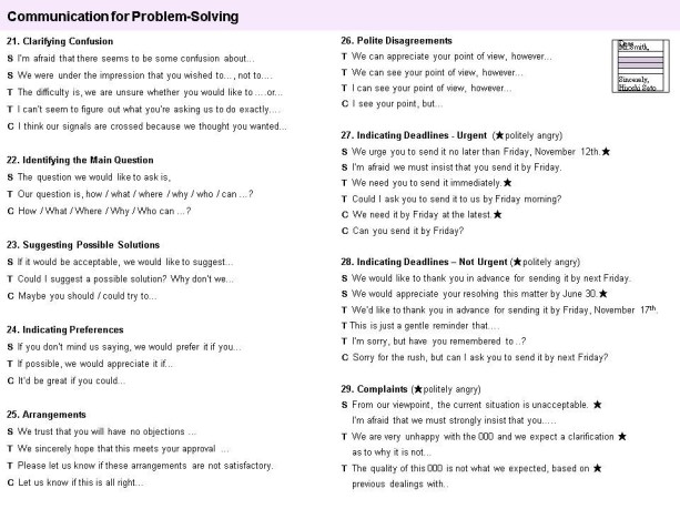 Requests and Rank: Due to different cultural ideas of hierarchy at work, it is very important for you to avoid “top – down” sounding phrases such as, “Please confirm this asap.”