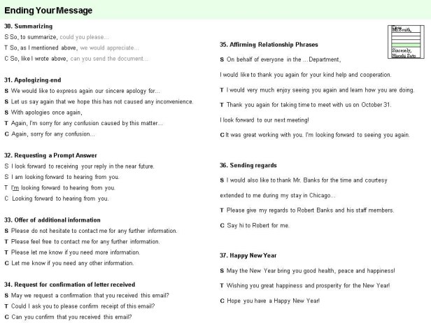 – Different levels of politeness for Closing (eg. Best regards,)